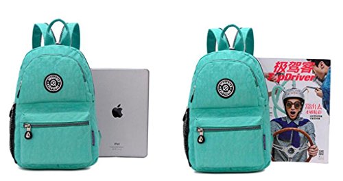 Fabrics lightweight,Water Repellent and anti-tear nylon cloth / Demension: 8.3" x 3.9" x 11.8" £¨L x W x H),Small size backpack for teen girls. / Main zippered compartment with a divider for iPad Mini ,it's a little tight to fit iPad Air.With 2 front pockets,2 side pockets and 1 back pocket to better organise your essentials. / 4 ways to carry: Backpack/Handbag/Shoulder bag/Sling chest bag. / Occasions: Travle,date,school,casual,picnic,sports,outdoor activities,and ect.