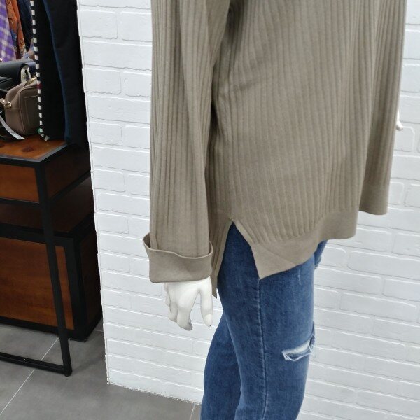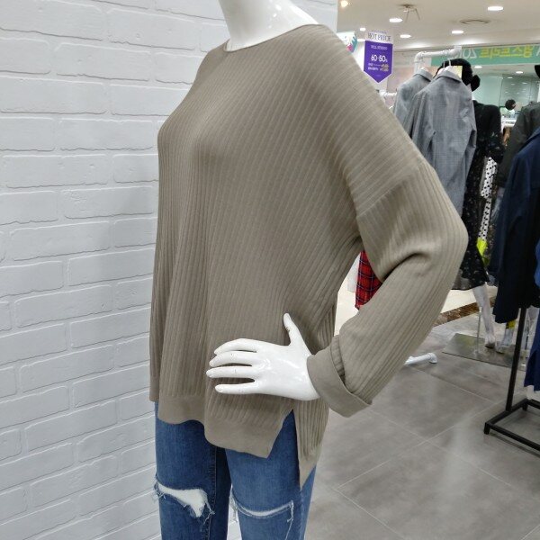 라운드넥의 깔끔한 언발 니트티로 소매단 포인트와 넉넉한 사이즈로 체형커버에 좋은 심플한 니트티이에요