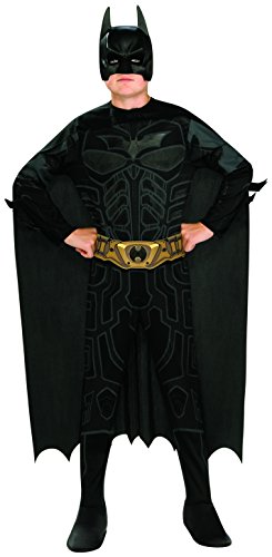 -. Binding : Toy -. Brand : Rubie's -. ClothingSize : Teen -. Color : Black -. Department : unisex-child -. EAN : 0883028636006 -. Feature : Brand new Authentic licensed DC Comics Standard Batman costume / Child Size Boys Large (12-14) for ages 8-10 approx 31"-34" waist, 55-60" height. All measurements provided by Rubies and are approximate. If in doubt please purchase larger size and children will grow into it. / This posting includes: Batman suit, cape and mask as featured / Please note that only the items listed above are included -. Label : Rubies - Domestic -. Manufacturer : Rubies - Domestic -. Model : 886360_STD -. MPN : 886360_STD -. NumberOfItems : 1 -. PackageQuantity : 1 -. PartNumber : 886360_STD -. ProductGroup : Toy -. ProductTypeName : CHILDRENS_COSTUME -. Publisher : Rubies - Domestic -. Size : Teen -. Studio : Rubies - Domestic -. Title : Rubie's Costume 886360_STD The Dark Night Rises Teen Batman Costume -. UPC : 883028636006 -. Warranty : No Warranty