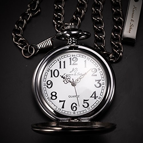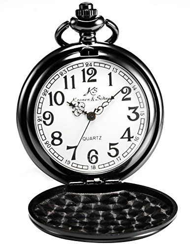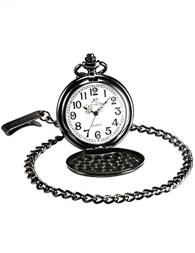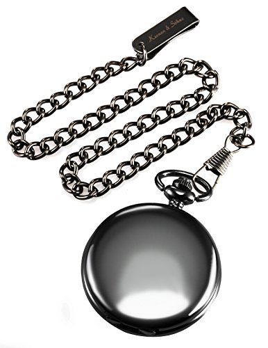 Ks [K 에스] KS 회중 시계 앤틱 뚜껑이 딸려 있음 체인 첨부 와 아라비아 숫자 블랙 KSP001