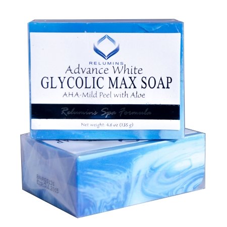 Relumins Advance White Glycolic Max Soap contains glycolic acid which gently lifts away excess oils, helps relieve skin of acne and clogged pores.