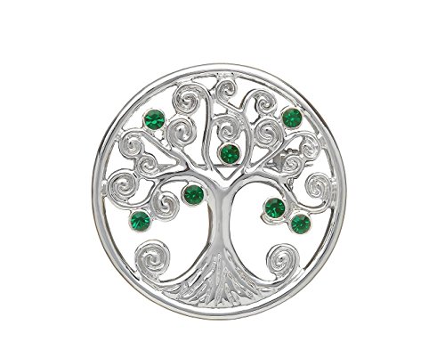 -. Feature : Silver Plated / Tree of Life / 3.5cm x 3.5cm / Pin and Clasp / Green Stone Design