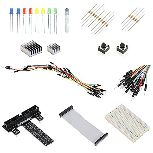 - Feature : Includes the New Raspberry Pi Model B+ (B Plus) 512 MB - Made in UK (Sony Factory), WiFi Adapter / 8 GB Samsung MicroSD Card - Raspberry Pi Foundation Recommended MicroSD Card pre-loaded with NOOBS, Raspberry Pi B+ Case with GPIO Access / 2.5A USB Power Supply with 5-foot Micro USB Cable specially designed for the Raspberry Pi B+ delivering full 2.5A @ 5V / Premium Quality 6-foot HDMI Cable, Set of Heat Sinks, GPIO to Breadboard Interface Board, Breadboard, Jumper Cables, Ribbon Cable / RGB LED, 8 x LEDs (Blue/Red/Yellow/Green), 15 x Resistors, 2 x Push Button Switches, CanaKit General Guide for Beginners to Electronic Components