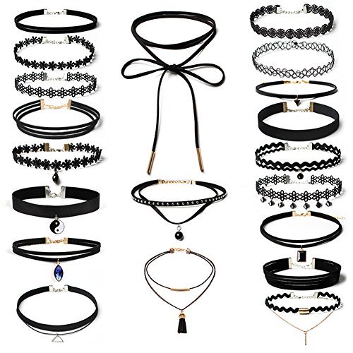Ammiy 20 PCS Choker Necklaces Velvet Choker Set Classic with Storage Bag for Women Black