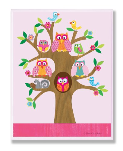The Kids Room by Stupell Owls, Birds, And Squirrel In A Tree Rectangle Wall Plaque, 11 x 0.5 x 15, Proudly Made in USA