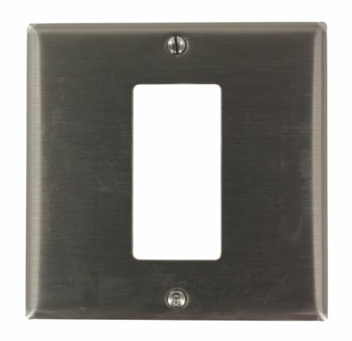 Leviton S746-N 2-Gang 1-Decora/GFCI Centered Device Decora Wallplate, Device Mount, Stainless Steel