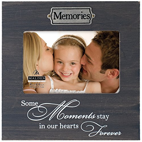 Malden International Designs Weathered Sentiments Wood with Antique Silver Metal Memories Plaque, Picture Frame, 4x6, Gray