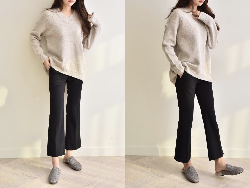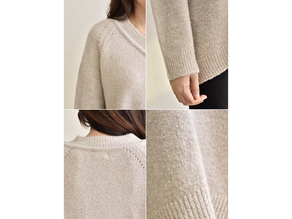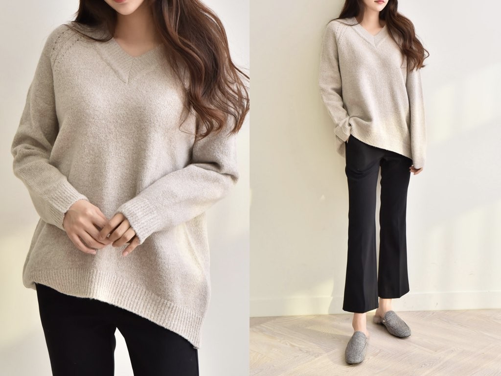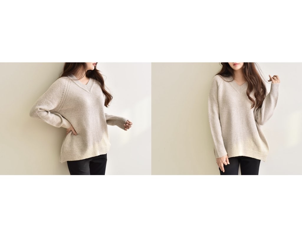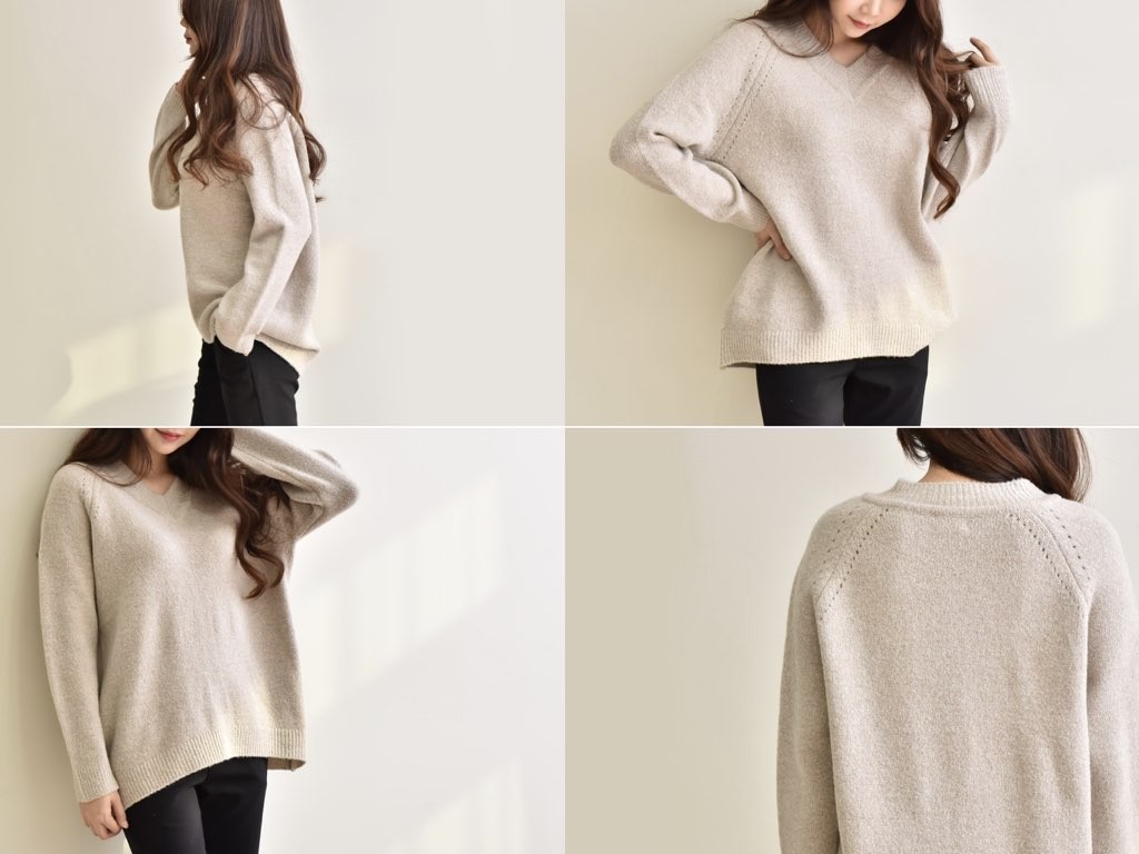 4色展開のVネック ニットです。ゆったりとしたデザインとなっており、着丈(前):68cm、着丈(後):73cmと前側が長いデザインとなっています。ゆったりとしたシルエットは、こなれ感が抜群です。1.基本情報色:4色展開(ベージュ/アイボリー/ピンク/ブラウン)サイズ:Free素材:アクリル67%、ウール10%、ナイロン20%、スパン3%製造国:Korea2.サイズ情報肩幅:ナグランデザイン身幅(胸断面):55cm 腕の長さ:67cm 着丈(前):68cm着丈(後):73cm(サイズは計る方法に応じて±2〜3cmの誤差があります。ご了承お願い致します)モデル着用サイズ:F※着用モデル(163cm、体重47kg、足のサイズ24.5cm)3.その他の情報厚み:中間透け感:なし伸縮性:高裏地:なし洗濯方法:ドライ(クリーニング)[注意事項]お取り寄せ商品は、海外より仕入れるため納品まで約10日前後いただきます。また店舗でも販売しており、在庫切れになる場合もございます。ご了承お願い致します。