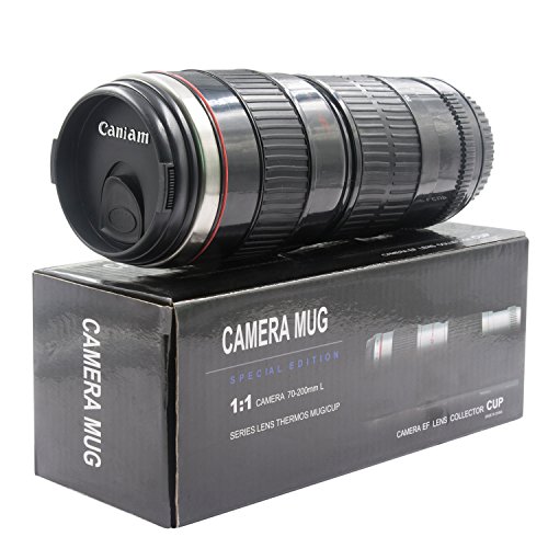 The Camera Lens Mug is an amazing replica of the Canon 70-200mm F4 lens. Combining functionality and style, it comes in black color, has a easy sip lid, and is super realistic.