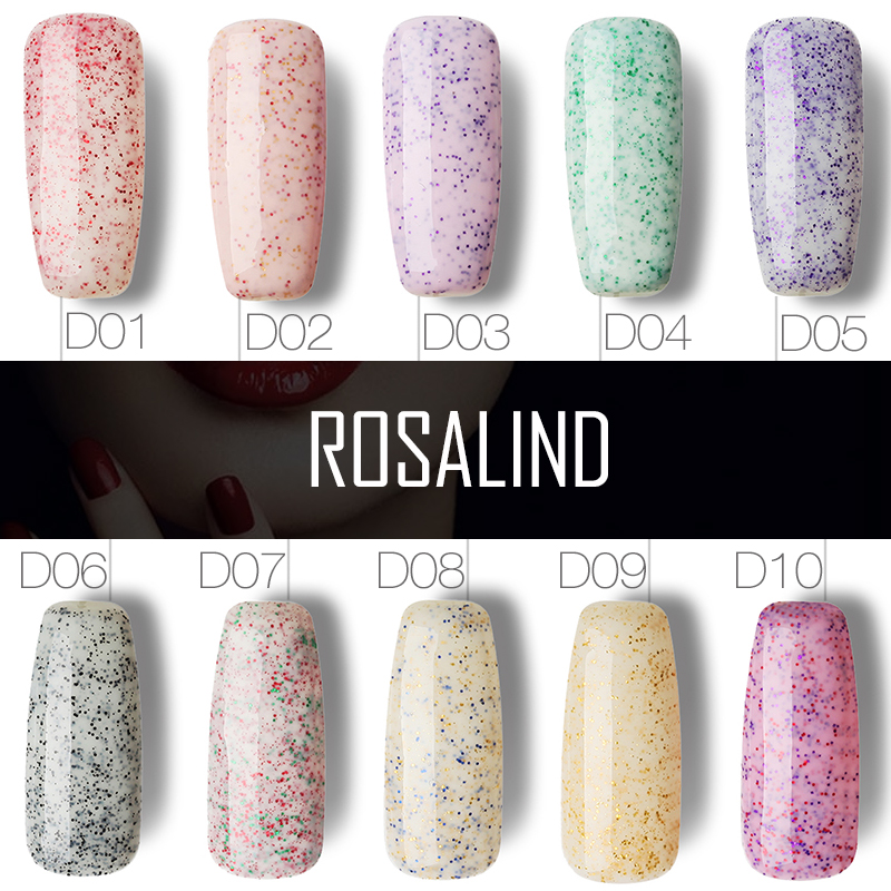ROSALIND Long Lasting Bling Candy Color Gel Polish UV Nail Gel Polish Dark Purple Color Gel Nail Polish 3D Glitter 10ml