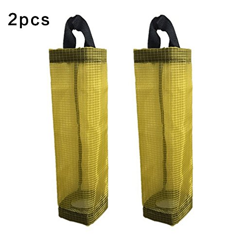 Hanging Folding Mesh Garbage Bag Organizer Trash Bags Holder Recycling Containers Plastic Waste Bag Storage for Kitchen (Green)-2pcs