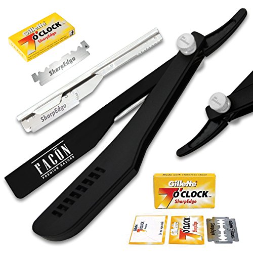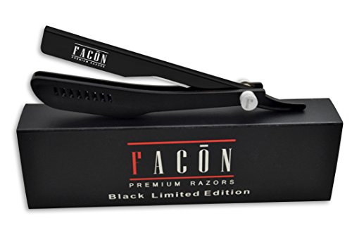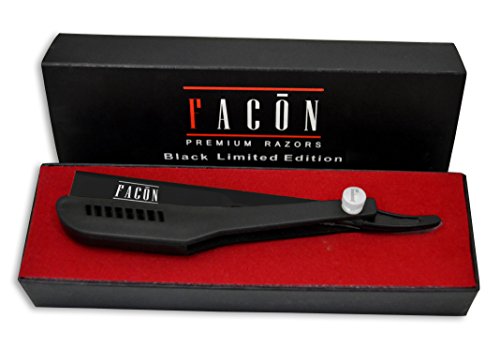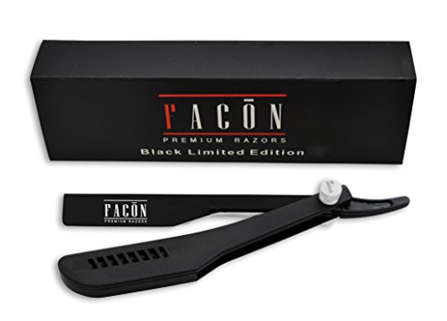 [BLACK] Facón Professional Straight Edge Barber Razor with Adjustable Tension Screw + 10 Blades - Salon Grade Quality Cut Throat Shavette - Japanese...