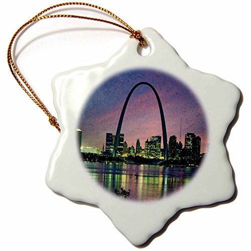 3dRose orn_56145_1 St Louis Missouri Arch at Nite Snowflake Decorative Hanging Ornament, Porcelain, 3-Inch