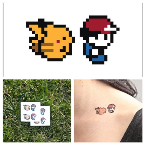-. Title : Tattify Pokemon Go Temporary Tattoos - Ash and Pikachu Pixel (Set of 2) - Fashionable Temporary Tattoos - Tattoos that are long lasting and Waterproof