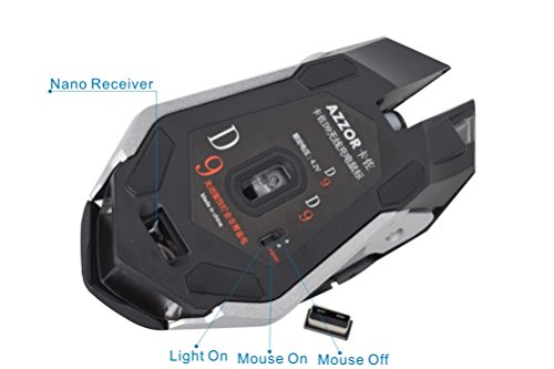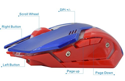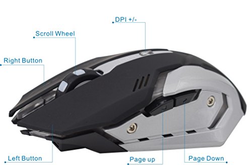 -. Feature : RECHARGEABLE: Built-in rechargeable battery.No need to change batteries. Up to 18 months of Li-ion battery life virtually eliminates the need to change batteries (Battery life may vary based on user and computing conditions.) / SILENT CLICK: Special soundless design for the right and left buttons, you can use it in your office to build a quiet office atmosphere. / 6 BUTTONS: scroll wheel, page forward, page backward, left button, right button, DPI key. When you browse web pages, you can click the side (forward/backward) buttons to go to the next or previous page. / LED LIGHT-UP FEATURE: 7 soothing LED colors change alternately, cannot be set to one specific color, it can be turned off. / ADJUSTABLE DPI: 800/1600/2400 DPI free switch. Dots per inch (DPI) is a measurement of how sensitive a mouse is. The higher DPI, the farther the cursor on your screen will move when you move the mouse.