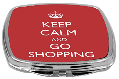 Rikki Knight Compact Mirror, Keep Calm and Go Shopping, Red