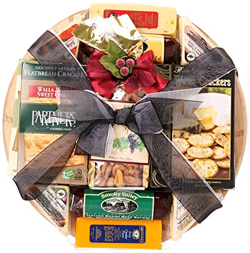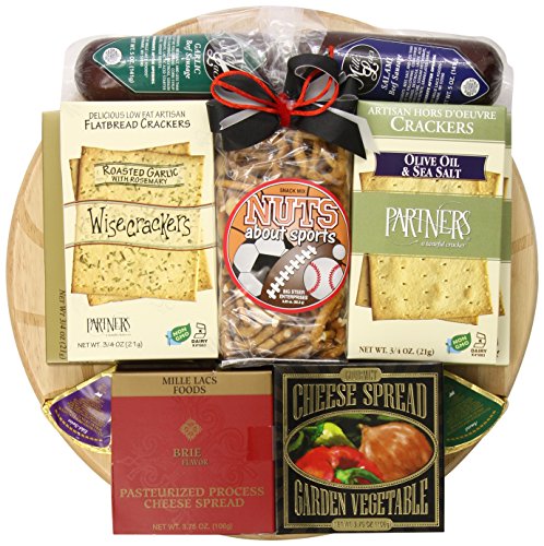 Slam Dunk - Basketball Gift Basket With Meat and Cheese on Deluxe Bamboo Basketball Cutting Board