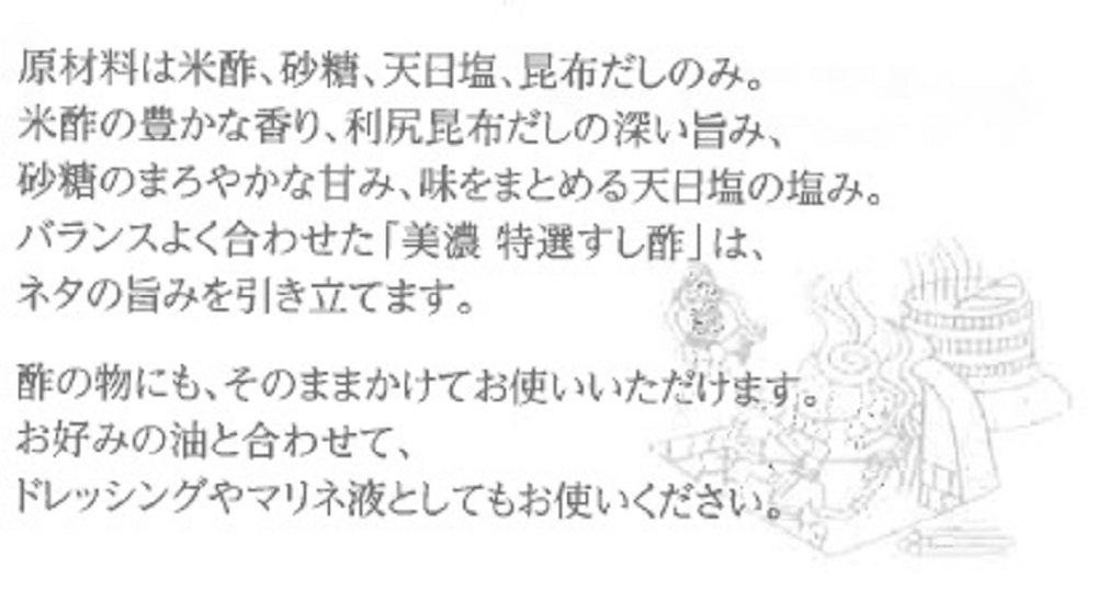 A well-balanced "Mino Special Sushi Vinegar" complements the taste of the material.