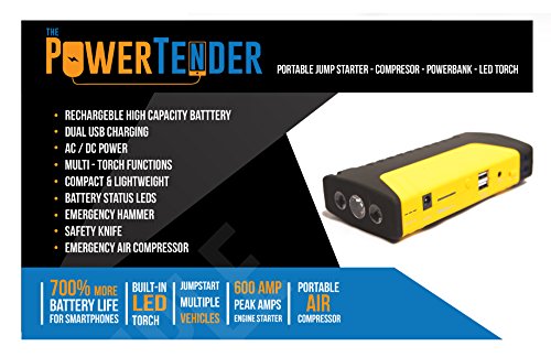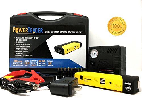 The Power Tender Portable Multi-function Car Jump Starter and Battery Charger with Emergency LED Flashlight and Air Compressor