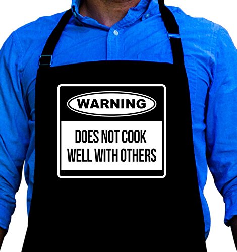 Warning Does Not Cook Well With Others - BBQ Grill Apron - Funny Apron For Dad - 1 Size Fits All Chef Apron High Quality Poly/Cotton 4 Utility Pockets, Adjustable Neck and Extra Long Waist Ties