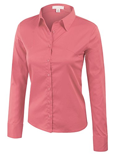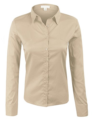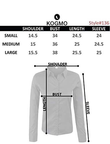 -. Binding : Apparel -. Brand : KOGMO -. Department : womens -. Feature : Machine wash cold, Do not bleach, Hang dry / Classic Long Sleeve Button Down Blouse / Cotton with stretch for comfort / Side & Back detail stitching / Imported (Made in Cambodia) -. Model : KOGMOYB136 -. ProductGroup : Apparel -. ProductTypeName : SHIRT -. Title : Kogmo Women's Classic Long Sleeve Simple Solid Color Button Down Blouse