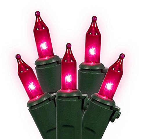 Vickerman Pink Mini Christmas Lights with Green Wire, Set of 100