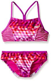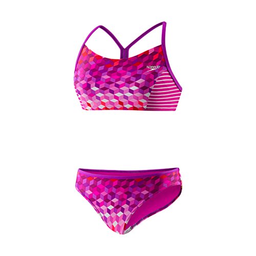 Studio : Speedo Children's Apparel Publisher : Speedo Children's Apparel Binding : Sports Product Description Cubes and stripes play well together on this vibrant two-piece suit. It's constructed with new creora highclo fabric, which resists the harsh effects of chlorine for lasting fit and comfort. Sporty back style keeps straps in place, bottoms feature silicone grippers to eliminate wedgie worries. 0