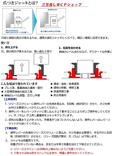 【Product Description】 ● Safety load: 2.5t / nut portion 5t ● Weight: 11kg ● Lowest order: 16mm ● Raise width: 115mm ● Body size: 210 × 140 × 232 mm ● Manual hydraulic type ● PL (product reparation liability)