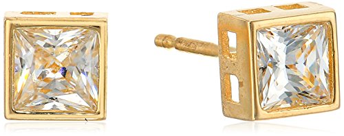 14kt Yellow Gold Bezel Set Princess-Cut Cubic Zirconia Stud Earrings (1/2 cttw., Diamond Equivalent)