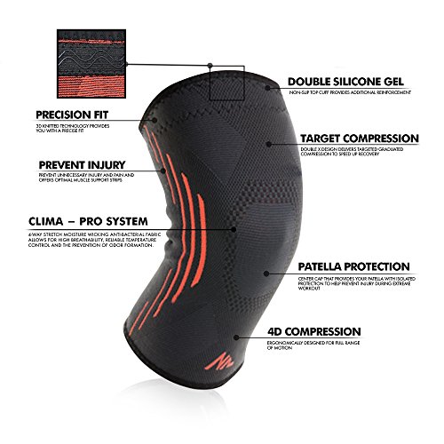 -. Feature : EXCEPTIONAL PROTECTION - NEWZILL CLIMA-PRO Knee Sleeve applies constant pressure across your knee joint, which provides ultimate pain relief from a variety of ailments including arthritis, swelling, tendonitis, meniscus tear, soreness, stiffness, ACL, PCL, MCL, and other knee pain. With our knee brace sleeve, you'll be able to attack any activity life throws your way, while ensuring you're a step ahead in injury prevention! / GRADUATED COMPRESSION - Designed to apply graduated compression without restraining your freedom of movement and without increasing the risk of blood clots, our knee support sleeve provides necessary warmth, improves blood circulation, and aids muscular recovery. / PREMIUM QUALITY - Our knee sleeve is manufactured to provide superior support, comfort, and relief without compromising your mobility. Tight, form-fitting, and breathable compression fabric maintains joint stability regardless of activity, helps improve blood circulation, and eases pain while avoiding the itchiness common to neoprene supports. Our knee compression sleeve absorbs sweat rapidly and keeps your leg dry and odor-free for hours! / BREATHTAKING DESIGN & ANTI-SLIP SYSTEM - NEWZILL CLIMA-PRO Knee Sleeve utilizes special knitted 3D precision technical design with two silicone gel strips to ensure your sleeve always stays put, no matter what you do! The engaging design and color options make you look fashionable anywhere anytime. The special fabric gives you a smooth and soft feel so you can wear them all day long! / KNEE SUPPORT - Our knee sleeve is not just for knee pain relief-if you frequently participate in physical activities that have heavy impact on the knees, you can greatly benefit from knee compression. Our knee compression sleeve is perfect for supporting injury prevention during intense physical exercise, heavy lifting, post-surgery from MCL and ACL injuries, Crossfit, basketball, powerlifting, and even field sports like rugby, running, basketball, soccer, football, golf, cycling, tennis, hiking