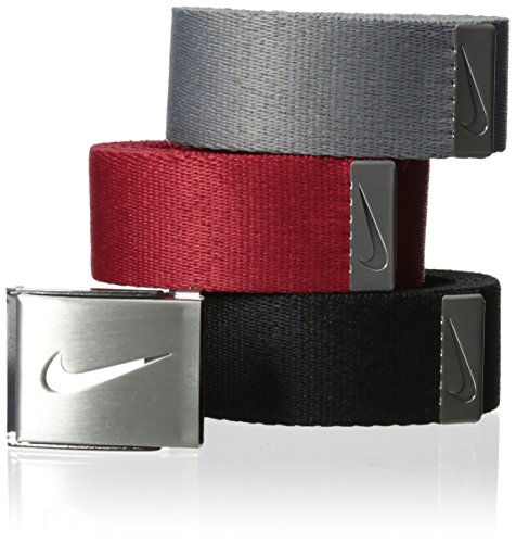 -. Binding : Accessory -. Brand : Nike -. Department : mens -. Feature : Golf Three-in-One Web Belt Pack includes a trio of colored bands and a metallic buckle with a cut-out Swoosh design / Three solid textile belts / Adjustable and cut to size / One size fits up to 42 / 1.5" wide -. Label : Nike Men's Belts -. Manufacturer : Nike Men's Belts -. Model : 11200 -. MPN : 1120036 -. PackageQuantity : 1 -. PartNumber : 1120036 -. ProductGroup : Apparel -. ProductTypeName : ACCESSORY -. Publisher : Nike Men's Belts -. Size : One Size -. Studio : Nike Men's Belts -. Title : Nike Men's 3 in 1 Web Belt
