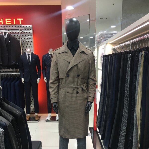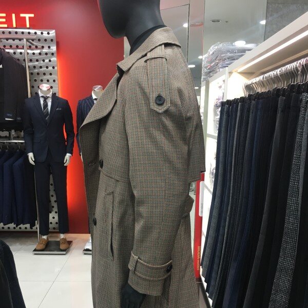 구김이 적은 스트레치소재에 오버사이즈 실루엣과 하운드 투스 체크 패턴의 BELTED 트렌치코트입니다.