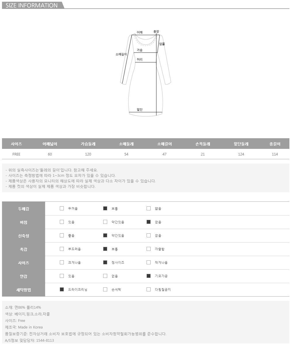 기모 맨투맨 원피스#35693MD COMMENT기모 안감으로 더욱 따뜻한 데일리 원피스를 소개해드려요DETAIL TIP맨투맨 스타일로 캐쥬얼하게 입기 좋은제품이에요, 간단하게 점퍼나 코트와매치하기 좋으며 넉넉한 핏감으로 체형보완에도좋은 아이템이랍니다 :) 신축성이 있는 소재로제작되어 활동하기에도 편해요~COLOR,SIZE TIP컬러는 베이지,핑크,소라,차콜 4color로 구성되어 있으며, 모델의 착용 컬러는 소라입니다.