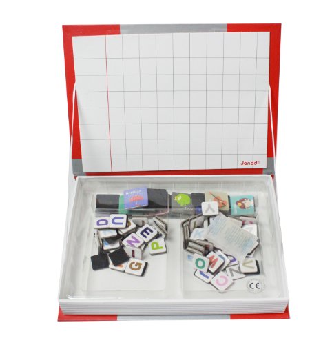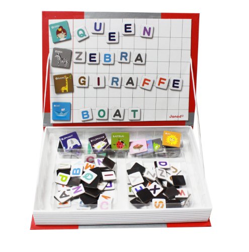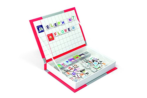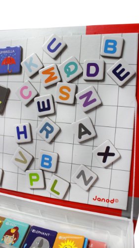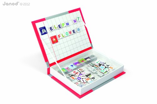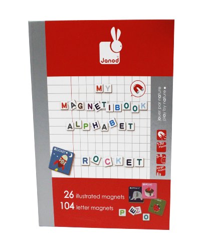 ReleaseDate : 2013-07-28 Studio : Juratoys Publisher : Juratoys Binding : Toy Product Description Boost your spelling skills with Janod's Magnetibook Alphabet! Designed in France, this activity, which is contained in a handy book shaped box hat makes it perfect for at home play or on-the-go, contains 26 different pictures and 104 different letter tiles. With pictures ranging from rockets to cupcakes and the name of the picture printed neatly at the top of each card, you'll be spelling along in no time. Simply place a picture card on the open cover of your Magnetibook and then find the letter tiles to spell out your picture. Grab a few pictures and spell out a phrase! Or use the letters on your own to make funny words and phrases. Store and sort all your Magnetibook pieces in the different compartments so you're always ready to create and when you're done for the day, easily stash it on your bookshelf for tomorrow! With Janod's Magnetibook Alphabet, the possibilities are endless! 0