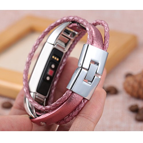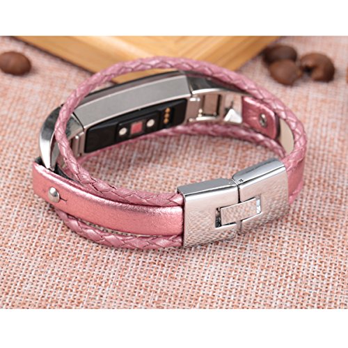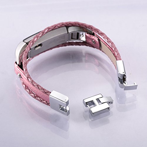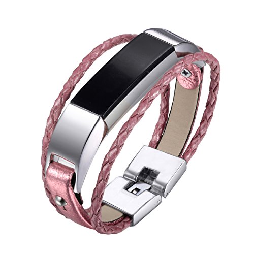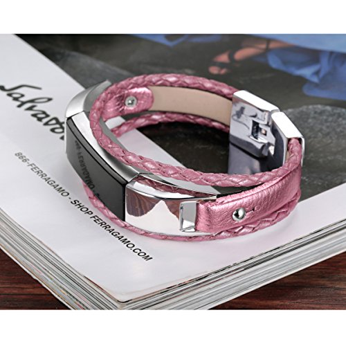 For Fitbit Alta and Alta HR Bands, bayite Leather Bands Metal Clasp Fitbit Alta Replacement Accessory Bracelet Black Brown Pink Large Small