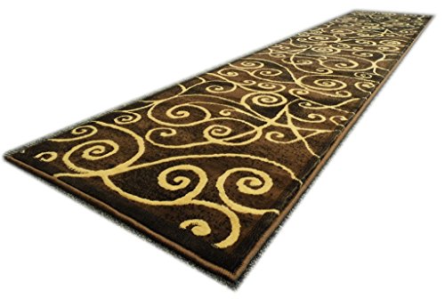 Modern/contemporary brown runner rug 32" x 10'
