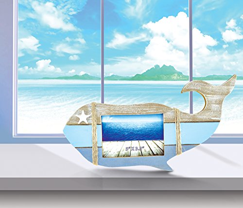 Puzzled Nautica Whale Shape Photo Frame 5"x3.5" Handcrafted Wooden Nautical Decor - Ocean / Sea Life Theme - Unique Elegant Gift and Souvenir - Item #9561