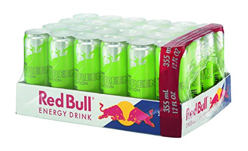 Add this 24 Pack of Red Bull Green Edition Energy Drink to your basket and get twenty-four Red Bull Green Edition cans, 12 Fl Oz (355mL) per can, 100-Percentage-recyclable can