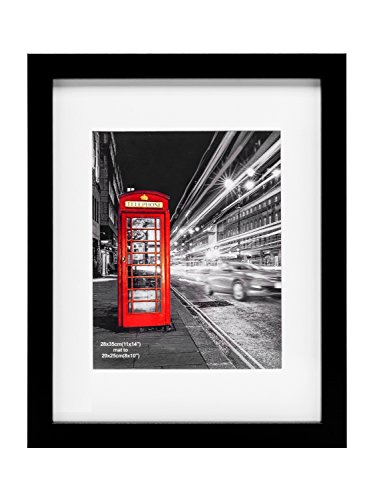 11x14 Picture Frame - Wall Mounting to Display Pictures 8x10 with Mat or 11x14 Without Mat Black