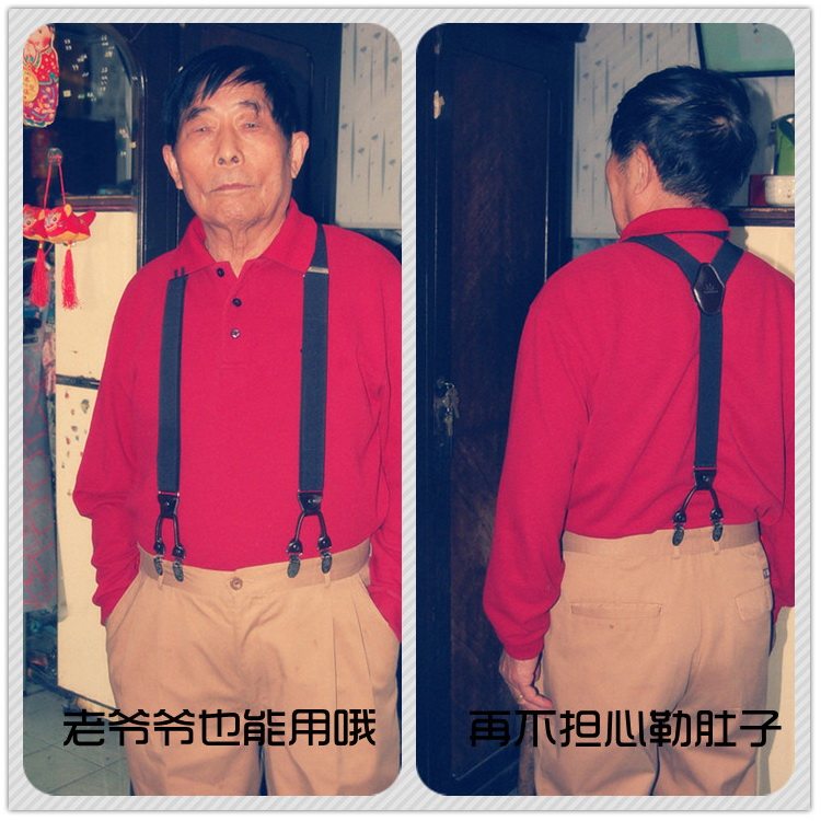 特别感谢买家的父亲倾情出镜 提供了完整的6扣背带图片秀