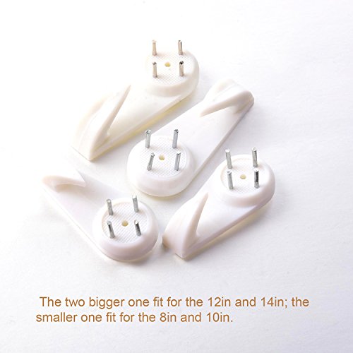- Assorted sized plate hangers: these wall plate hangers have 4 sizes, 8 inches, 10 inches, 12 inches and 14 inches, can be applied to hang different sized plates