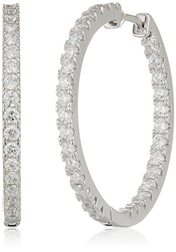 Rhodium Plated Sterling Silver Prong Set Cubic Zirconia Hinged Huggie Hoop Earrings