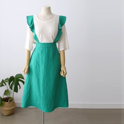 프릴 서스펜더 덕분에 사랑스러운 린넨 드레스.
