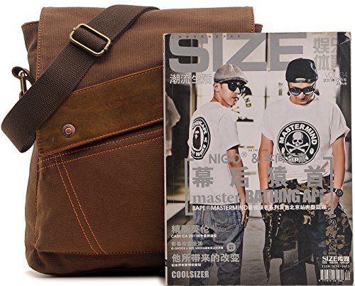 Material:Canvas,genuine leather.100% cotton canvas small messenger bag;Genuine leather deco.Perfect shoulder bag!