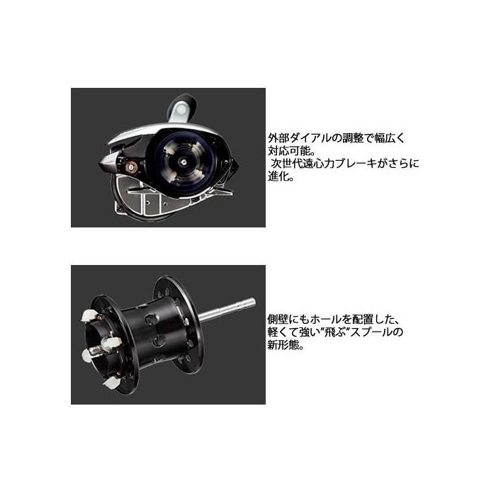 [매그넘 라이트 스풀]측벽으로도 홀을 배치했다, 가벼워 강하다「난다」스풀의 신형태.:베이트 릴의 캐스팅 성능을 좌우 하는 스풀의 관성 모멘트.개발로는 그 감소를 목적으로 스풀동 지름에의 blanking나 박고기화를 행하게 되었지만,「NEW매그넘 라이트 스풀」그러면,지금까지 기술 적으로 불가능과 되고 온 스풀 측면에의 구멍 열게 성공.당사비에 관성 모멘트의 약10%다운을 달성하고, 참으로 약20%의 비거리 업을 마크 했습니다.