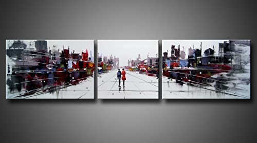 -. Title : Amoy Art - Hand Painted Large Abstract Oil Painting City Landscape Couples Walk in the Street with Stretched and Framed Canvas Wall Art Set of 3 Panels Ready to Hang