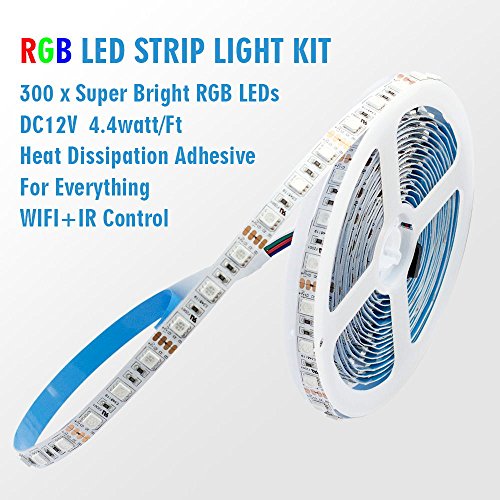 - All in one kit : Comes with 12V 6A adapter, a Wireless Wifi controller, 16.4ft 300 LEDs Strip light and a mini 24 Keys IR remote .