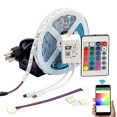 LED WiFi Cotroller Light Strip Kit, SuperLightingLED 16.4ft WIFI Wireless Smart Phone Controlled 300leds 5050 RGB Light Strip, 12V Power Adapter with Controller Working with Android and IOS System