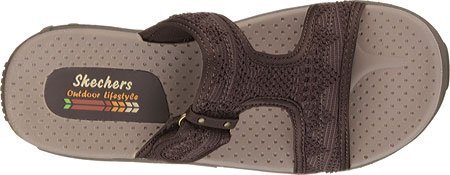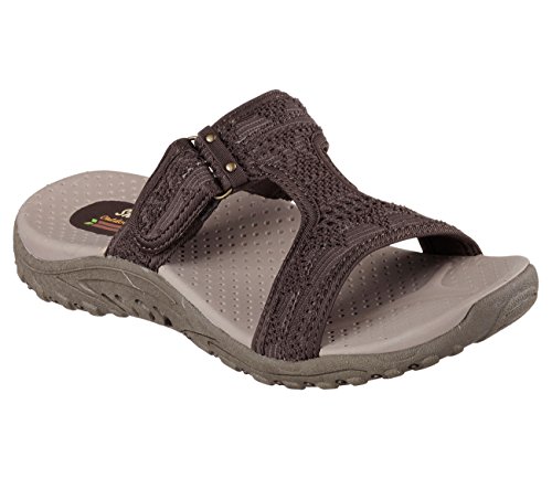 Studio : SKECHERS USA Inc Publisher : SKECHERS USA Inc Binding : Apparel Product Description Find your serenity in summery style and comfort with the SKECHERS Reggae - Desert Escape sandal. Woven fabric upper in a t-strap casual comfort slide sandal design with stitching accents. Soft fabric topped footbed Cushioned and contoured comfort footbed Reggae design supportive shock absorbing midsole Flexible rubber traction outsole. 0