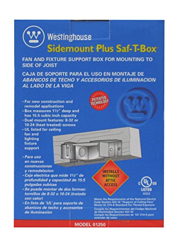 Includes all mounting hardware required for installation. Westinghouse 0125000, Sidemount Plus 1-1/2'' Fan Box